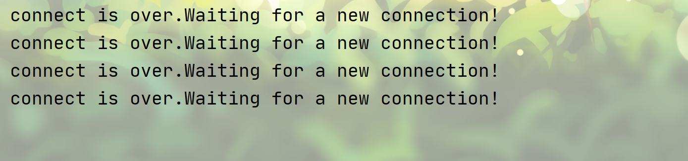 cout << "connect is over.Waiting for a new connection!\n";
