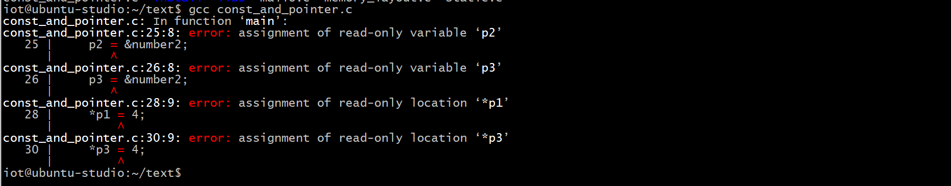 由此可见, 常量指针内容是不可以被改变的; 指针常量地址是不可以被改变的; 指向常量的常量指针, 内容和地址均不可被改变