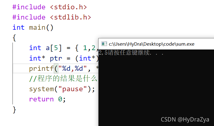 //(int*)(&a+1)将这个地址强制类型转换成int*,放到ptr1里面