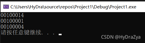 //0x100014 此时p是结构体指针,结构体大小是20个字节,p+1其地址+20,而20转换成地址是0x00100014(这里后面的1为16,4就是4)