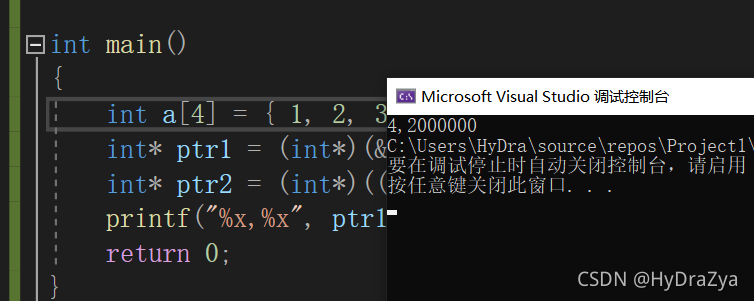 //a表示数组首元素地址,(int)a将这个地址强制类型转换成int类型