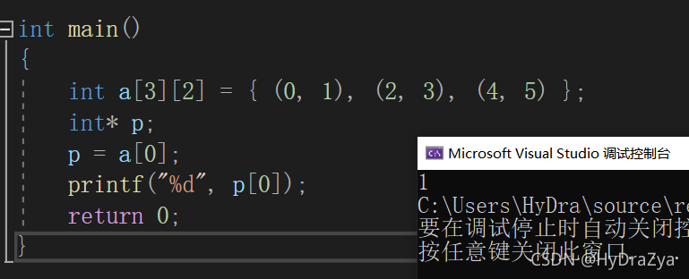 //0 p[0]指向的是首元素地址,%d打印就是1