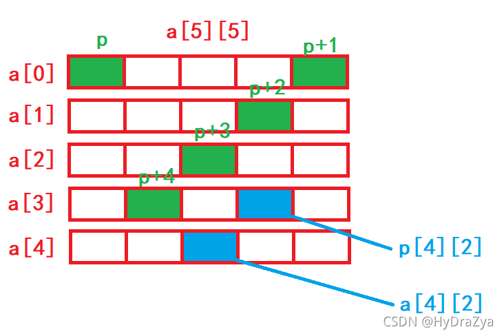 //将二维数组第一行第一个元素的地址赋值给p