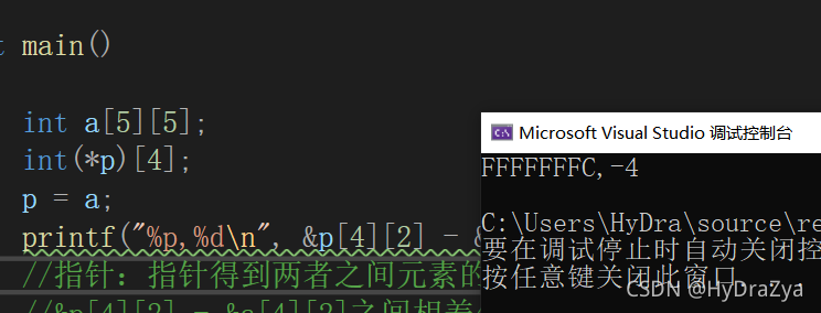 //&p[4][2] - &a[4][2]之间相差4个元素,且p<a 得到-4,所以用%d打印就是-4,