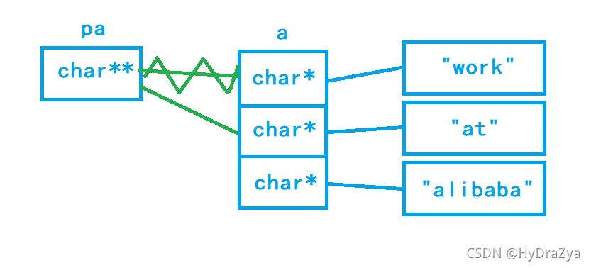 //pa此时指向了a的首元素地址,又由于a原来就有*,所以pa要用**