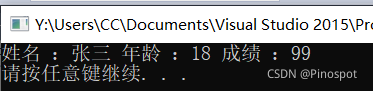 cout << "姓名 :" << s3.name << " 年龄 :" << s3.age << " 分数 :" << s3.score << endl;