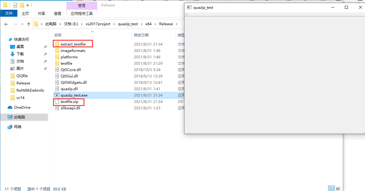 最后编译,运行。 运行时注意将zlibwapi.dll、quazip.dll以及qt的相关dll拷贝过来。还有plugin中的platforms、imageformats  最后查看结果