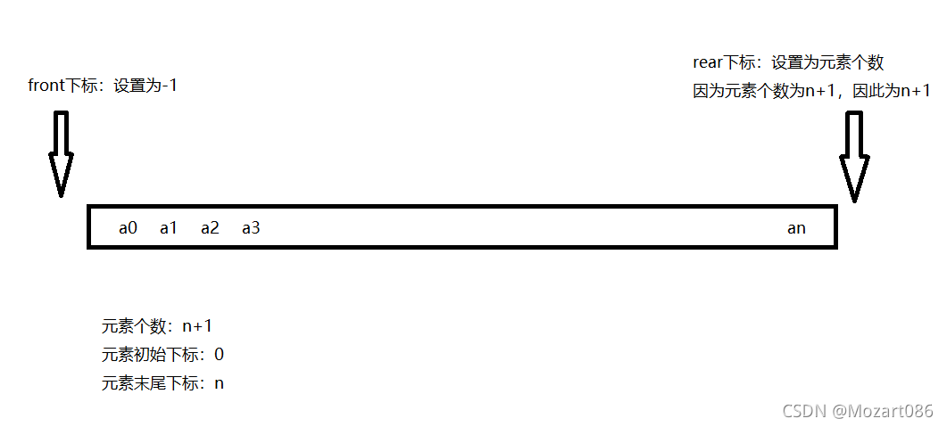 2. 设置浮标front与rear用于存放首元素下标与尾部元素下标