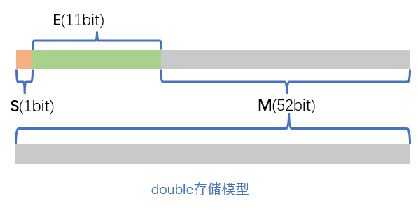 对于64位的浮点数,最高的1位为符号位S,接着是11位的指数E,剩下的52位为有效数字M。