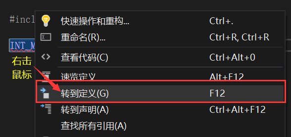 同理,我们可以用FLT_MAX(或者FLT_MIN、DBL_MAX等),引用头文件<float.h>,然后转到定义。