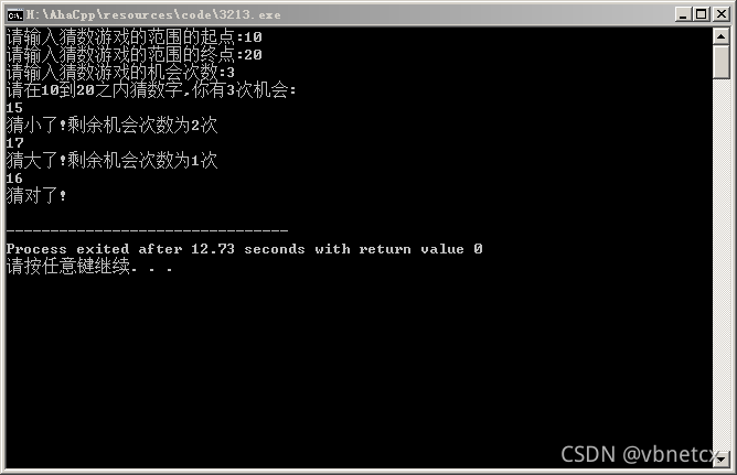 printf("没有机会了,正确答案是%d",random);//没有退出函数就说明机会用完了并且没有猜对,就提示没有机会了并揭晓答案