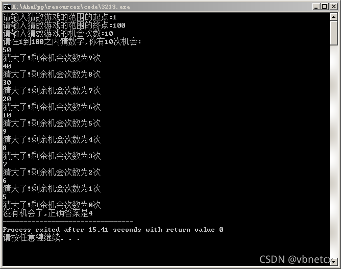 printf("猜大了!剩余机会次数为%d次\n",opportunity);//提示猜大了和剩余机会次数