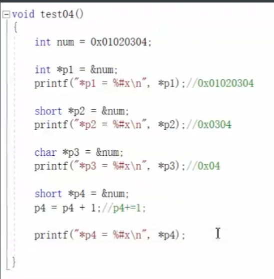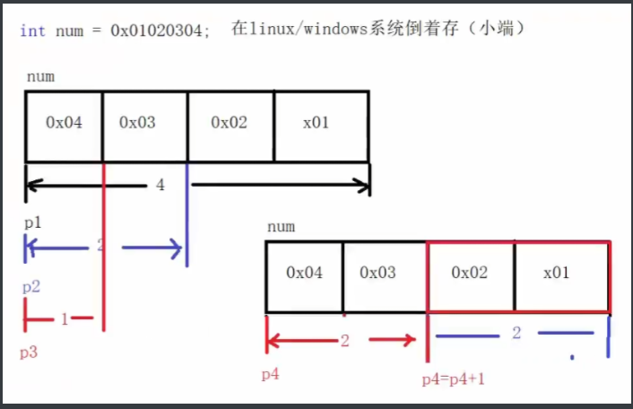 p2=0x0304(p2的指向类型为short类型 short占两个字节)