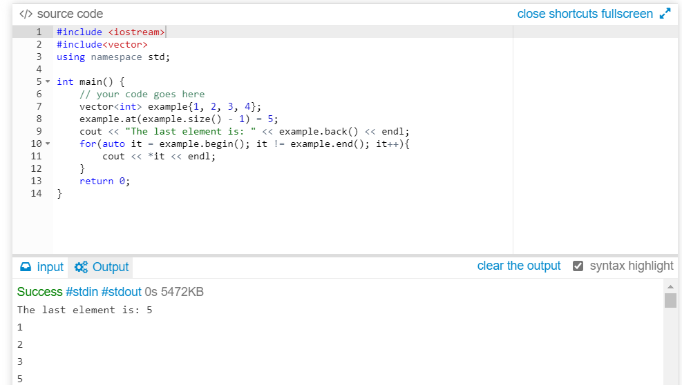 cout << "The last element is: " << example.back() << endl;