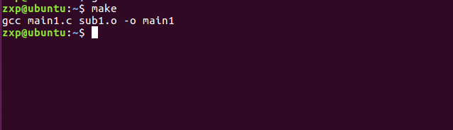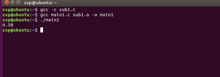 步骤一 命令:gcc -c sub1.c 作用:将sub1.c程序转换为目标文件sub1.o -