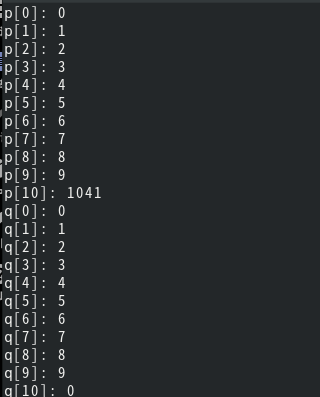 printf("p[10]: %d\n",p[10]);