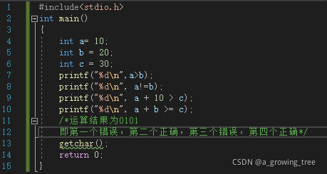 ?关系表达式的运算结果只有2种:0和1。0表示关系表达式为假,1表示关系表达式为真。