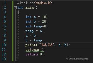 编写程序的过程中,实现交换变量a和b的值不是通过直接赋值的方式实现的。而是通过第三个变量用以过度而实现的。举个例子:现在有两个杯子,杯子a装的是可乐,杯子b装的是雪碧,想要把a,b两个杯子里的饮料交换一下就需要用到空杯子c。首先把杯子a中的可乐倒入空杯子c中,即将a赋值给c(注意!!!赋值不会清空杯子a的值,只是相当于使a=c,即杯子a和杯子c都装的是同样的可乐)然后再将杯子b中的雪碧倒入杯子a中,即将b赋值给a(此时b=a,即杯子a中装的是与杯子b相同的雪碧,而杯子c装的是与杯子a初始时相同的可乐),最后再将杯子c中的可乐倒进杯子b即可,即将c赋值给b,即可完成a与b之间的变量交换。