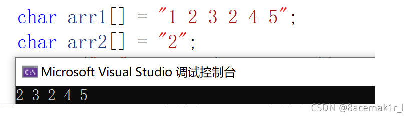 在arr1中找arr2,如果找到了,就返回arr2在arr1中第一次出现的地方的地址;如果没找到,就返回NULL