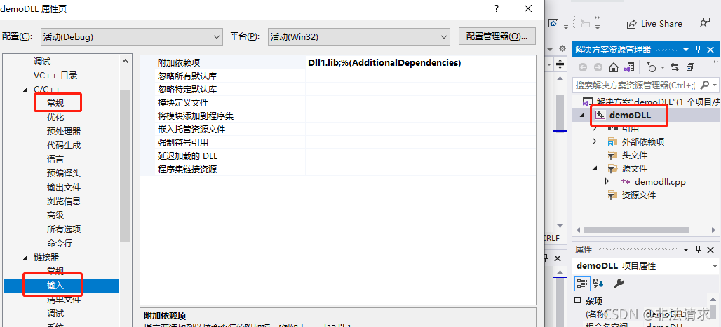 在解决方案上右击,选择属性,在c/c++常规和链接器输入项中的依赖项设置为根目录