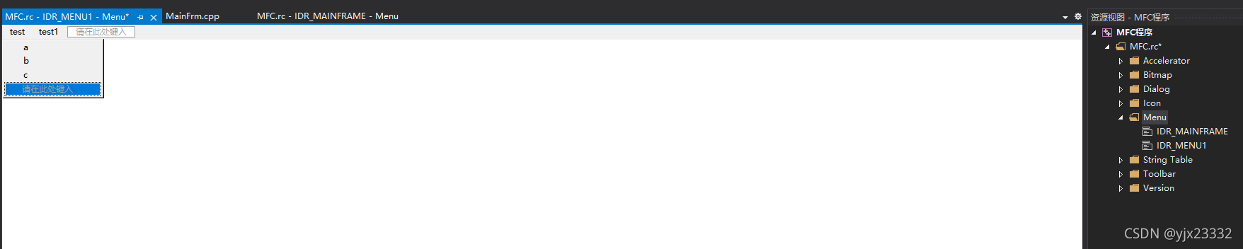 现在对MFC.rc中Menu文件夹插入新的Menu。