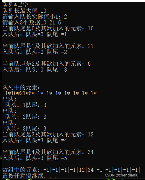 printf("队头=%d 队尾 =%d\n",sq[maxsize+1],sq[maxsize+2]);
