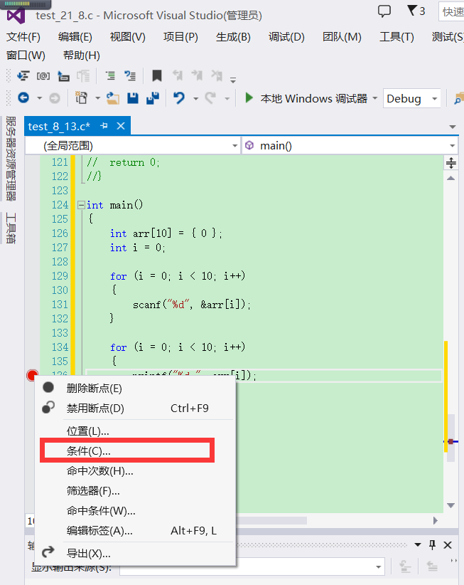 当想要满足某一条件运行执行断点时,可以设置条件,操作如下: