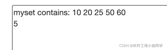 std::set<int> myset = { 50, 20, 60, 10, 25 };