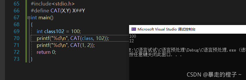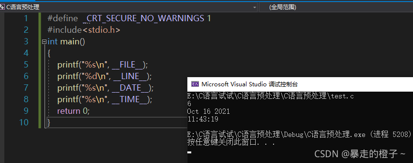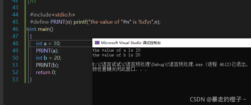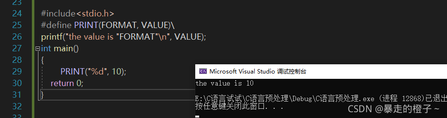 // 如果定义的 stuff过长,可以分成几行写,除了最后一行外,每行的后面都加一个反斜杠(续行符)。 #define DEBUG_PRINT printf("file:%s\tline:%d\t \ date:%s\ttime:%s\n" ,\ __FILE__,__LINE__ , \ __DATE__,__TIME__ )