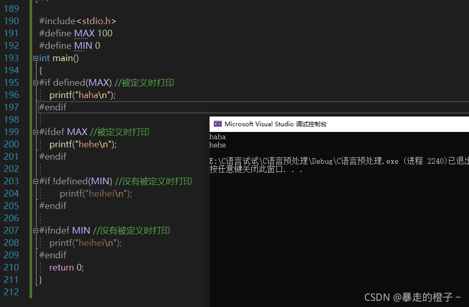 在编译一个程序的时候我们如果要将一条语句(一组语句)编译或者放弃是很方便的。因为我们有条件编译指令。 比如说: 调试性的代码,删除可惜,保留又碍事,所以我们可以选择性的编译。