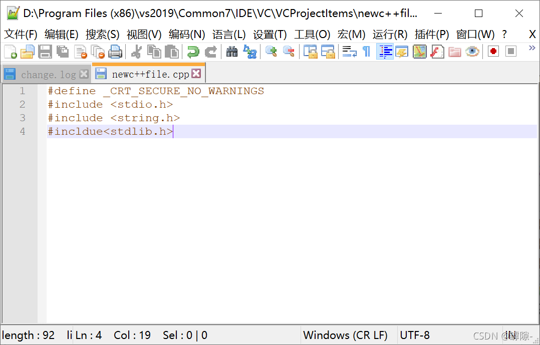 ?首先找到这个文件(要记住这个路径,之后要移回来),将这个文件移动到桌面。在桌面上无论是通过VS编辑还是通过文本编辑都可以(有了修改权限)。修改完之后一定要移回原路径下,否则vs编译器无法识别,也就是说没有效果。经过修改后,在新创建的文件开头自动加入我们需要的#define语句和函数的头文件(以后偷懒就可以不用再打了)。