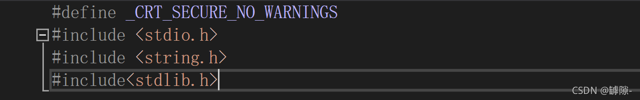 红框里的话翻译过来就是使用”define _CRT_SECURE_NO_WARNINGS”避免报错。既然编译器都这么说了,那我们就照做吧。