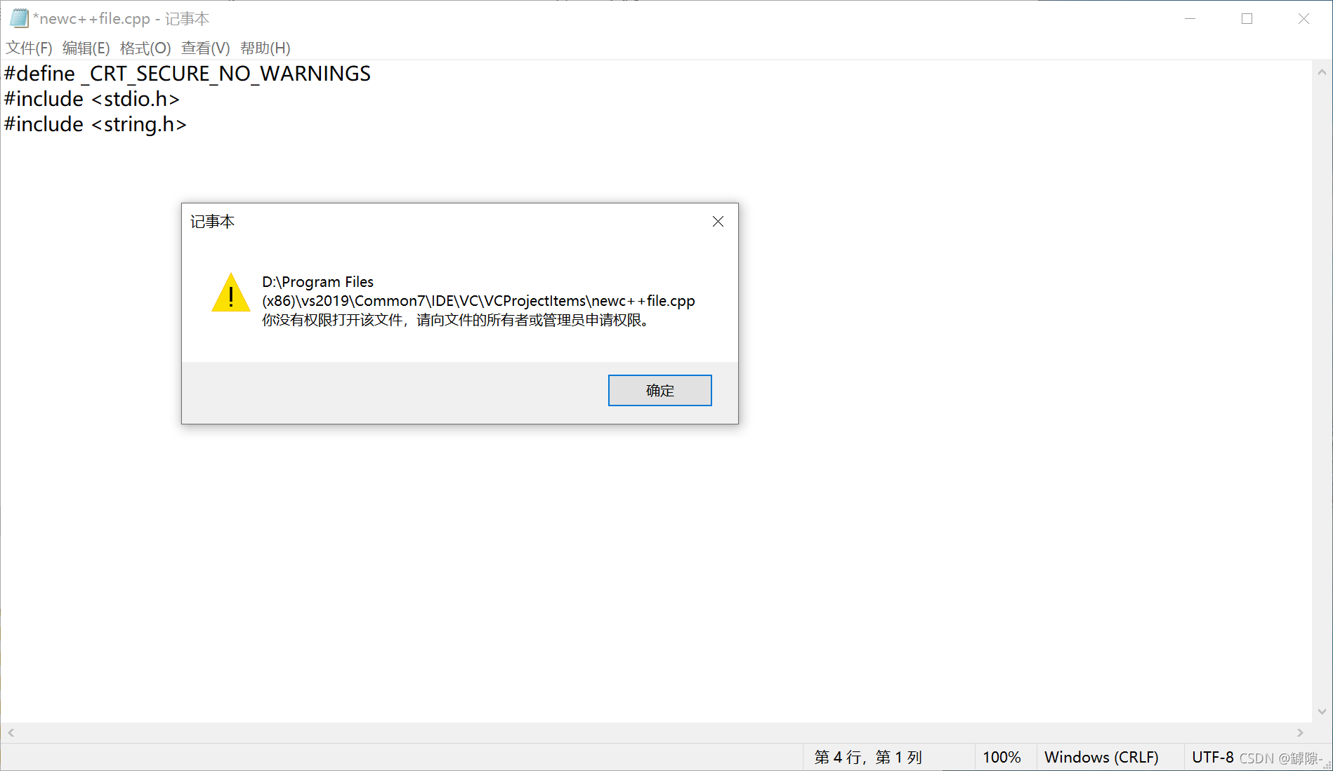 ?首先我们尝试在编译器下编辑,结果是被拒绝访问