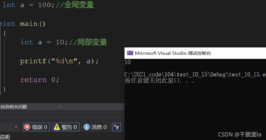 代码块外部定义的位全局变量,在代码块内部定义的为局部变量