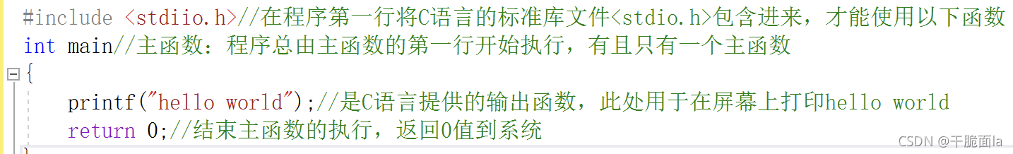 第一行为#include<stdio.h>目的是将头文件包含以使用函数