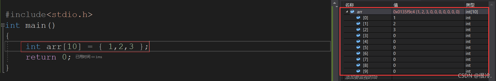 int arr[10] = { 1,2,3 };
