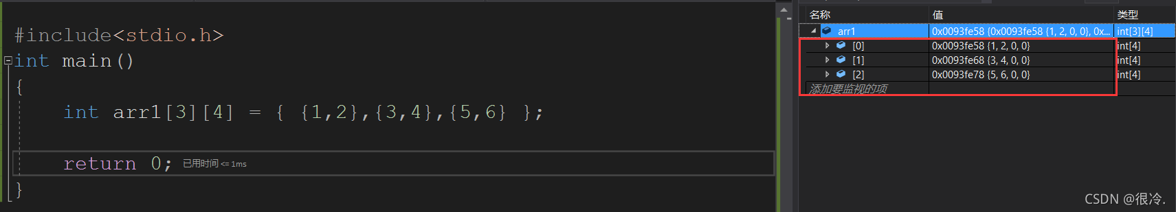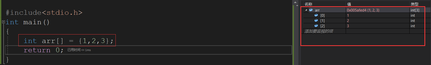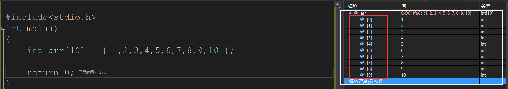 由此可以得出结论:数组在内存中是连续存放的。
