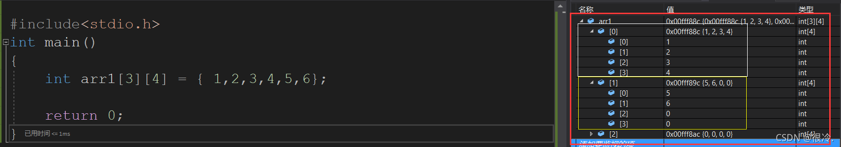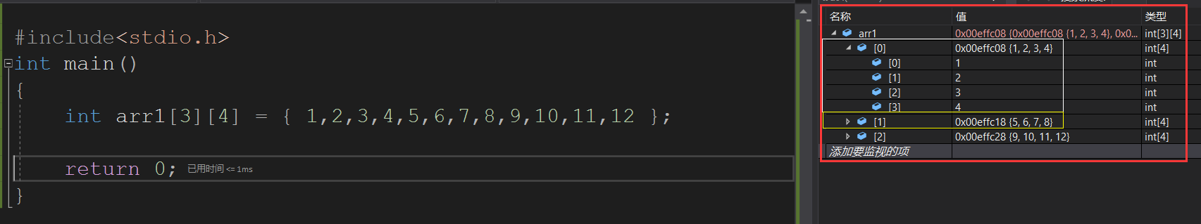 int arr1[3][4] = { 1,2,3,4,5,6,7,8,9,10,11,12 };