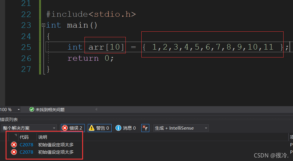 补充:如果对数组初始化成下面这种代码,再对该数组赋多个值编译器就会报错。