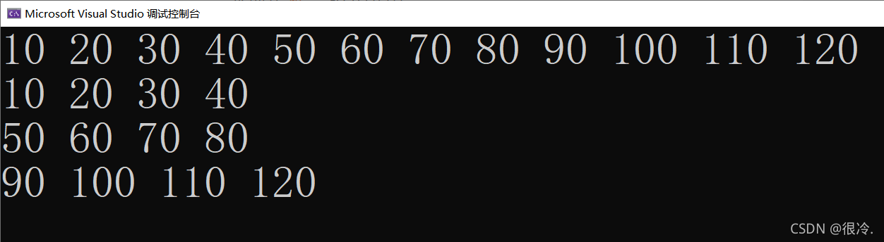 - 数组会根据初始化的内容将一行占满后,再将下一个元素放到下一行。