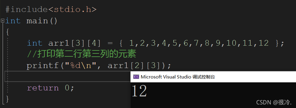 ?二维数组可以通过行列下标访问数组,行列下标都是从0开始的。