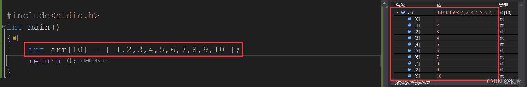 int arr[] = { 1,2,3,4,5,6,7,8,9,10 };