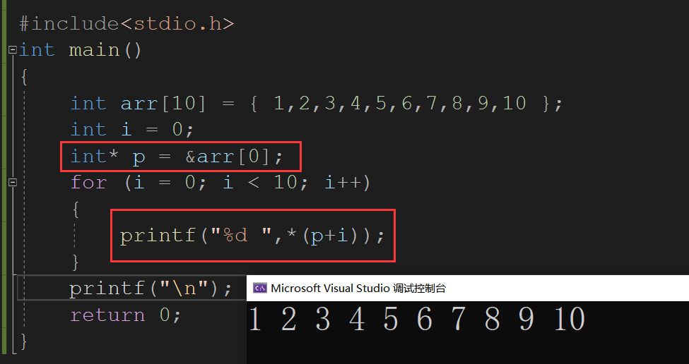 printf("%p -------%p\n", p + i, &arr[i]);