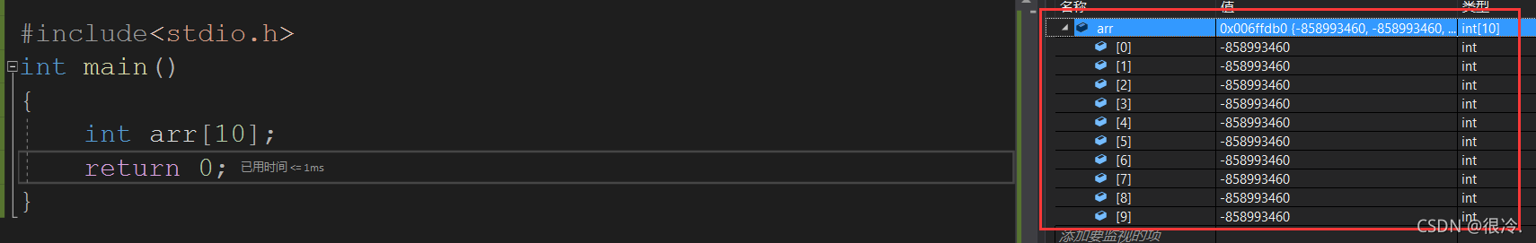 这样在使用数组时对数组是不可以控的,所以建议在创建数组的同时对数组进行初始化(可以初始化为0)。