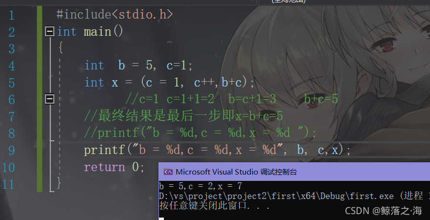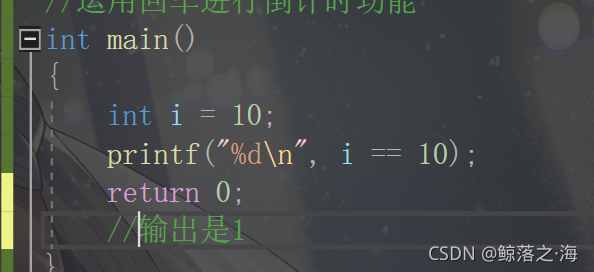 ? ? ? ?表达式一定是优先计算的,如下图: i == 10是一个表达式,执行逻辑运算,首先进行该表达式的运算,结果为真,即1,再执行printf的输出,因此输出为1