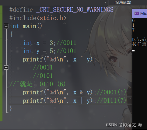 ? ? ’^’?: 按位异或 操作符 ?比较两个数相对应的位数(比较的是补码) 相同为0,相异为1