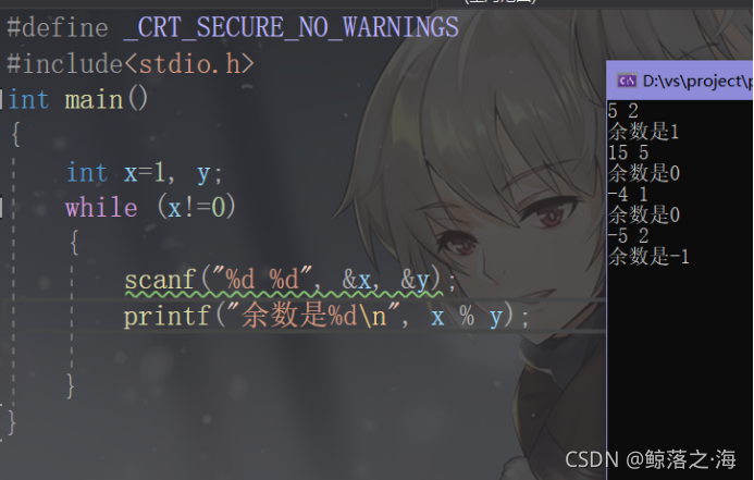 注意:?当有符号时,余数也会带上负号(余数为0时还是0),与整数略有不同