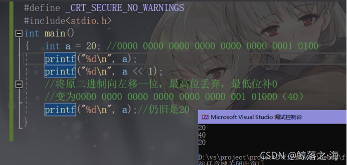 C:二进制向右移位即*2,,向左移位即/2(正数)