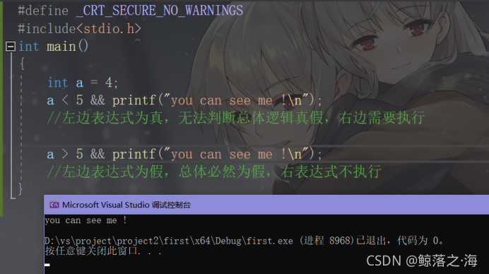 在c90标准下并不支持布尔类型(即True和False),因此逻辑真假在c中被实体化为0和1