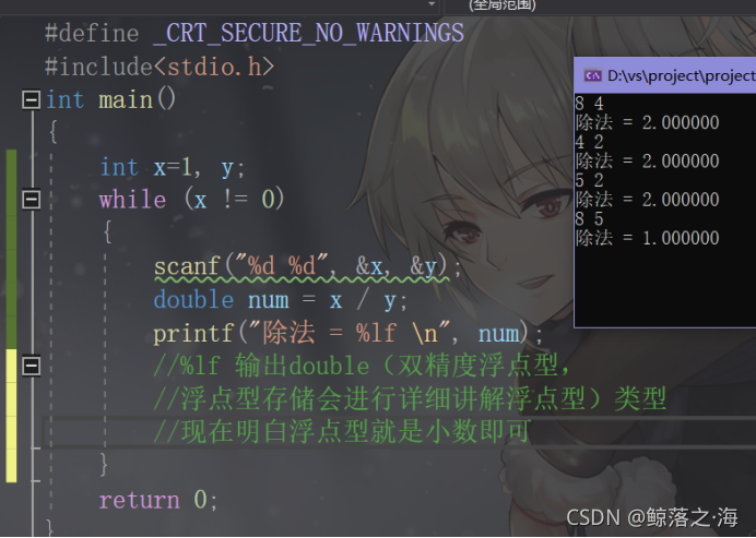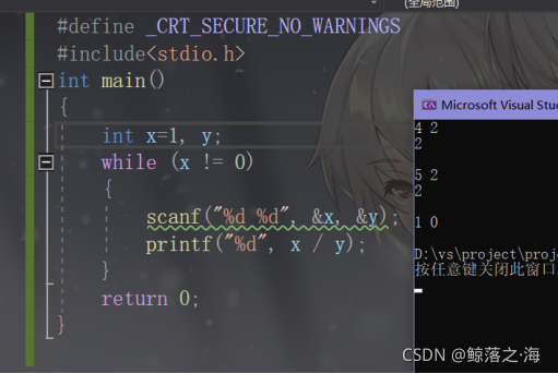 ? ? ? ?另外,同实际生活相同,0不能做除数,编译器不会报错,但计算结果有误,如下图第三次输入,没有结果输出,程序强制结束。